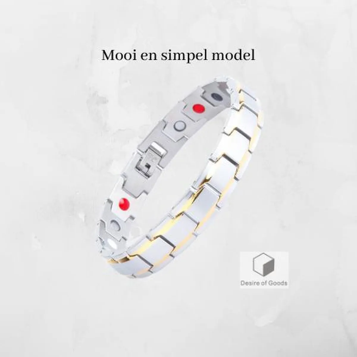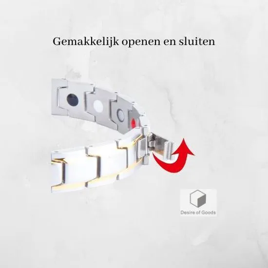 De armband is gemaakt van hoogwaardig edelstaal. In de binnenkant van de armband zitten diverse magneten bevestigd voor de werking van het product. De armband kan helpen met afvallen omdat het een aantal symptomen in uw lichaam controleert. Dit geldt alleen in combinatie met een gezonde levensstijl.