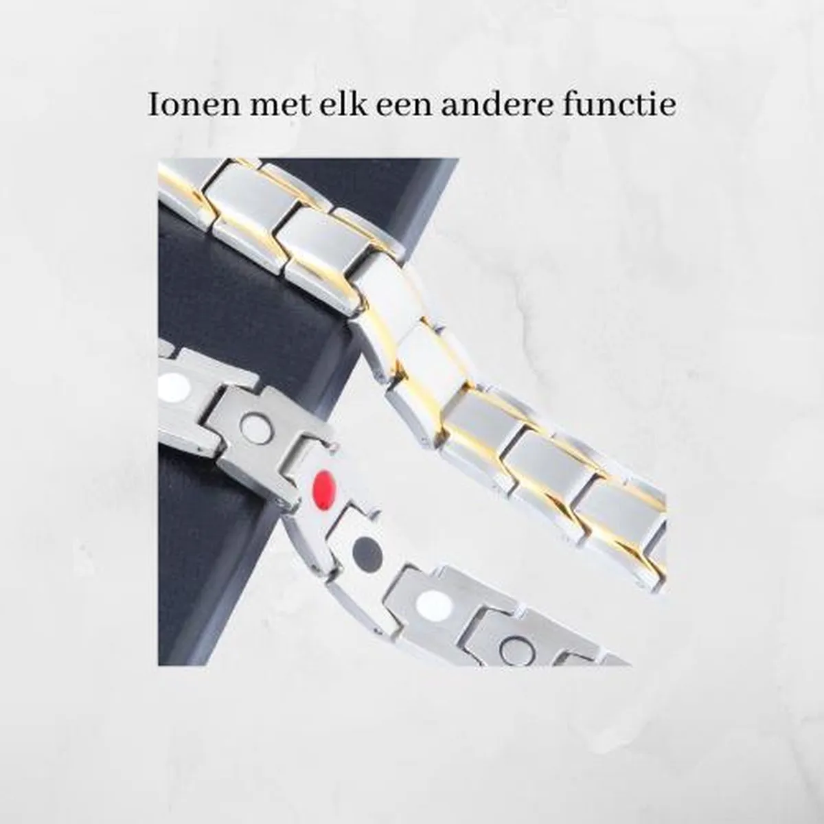 De magnetische armband zorgt ervoor dat negatieve ionen naar uw lichaam worden tegengehouden. Dagelijks krijgen we duizenden negatieve ionen binnen vanuit apparaten zoals mobiele telefoons, computers, tablets etc.
